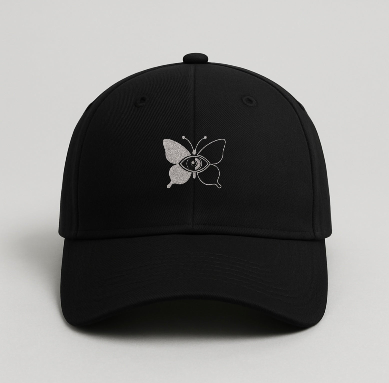Express duality, vision, and transformation—all in one clean silhouette. The CLRTY Eclipse Butterfly Cap pairs the label’s signature half-black/half-white butterfly-eye emblem with a street-ready, all-black canvas. It’s a daily reminder to “Edify your eternal state” while keeping your look effortlessly minimal.